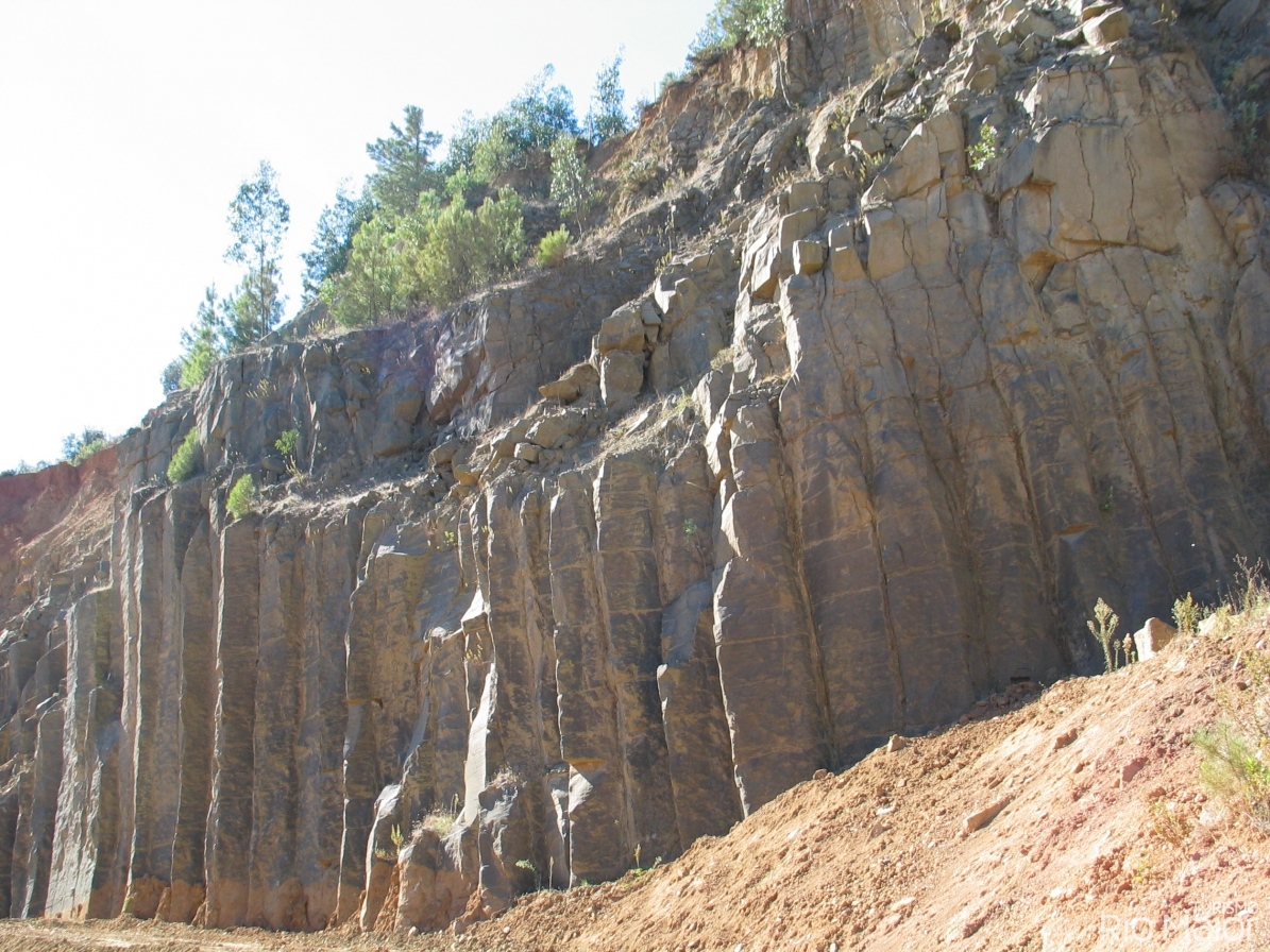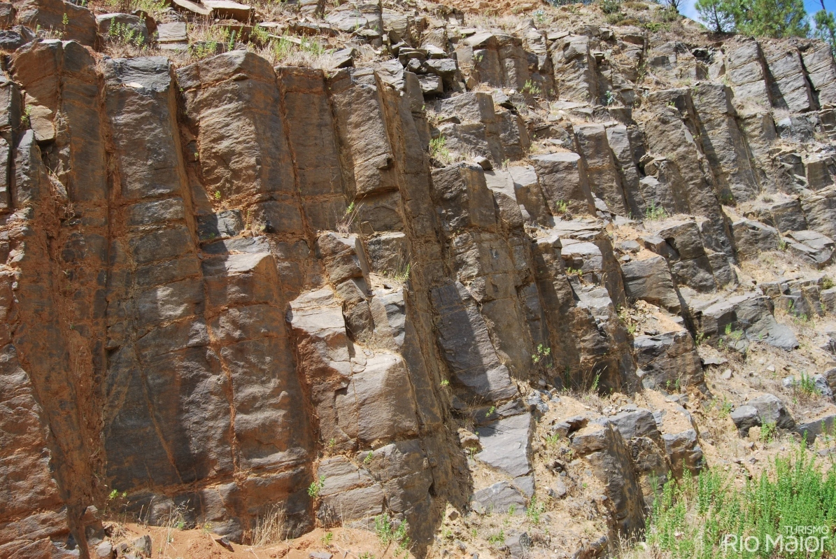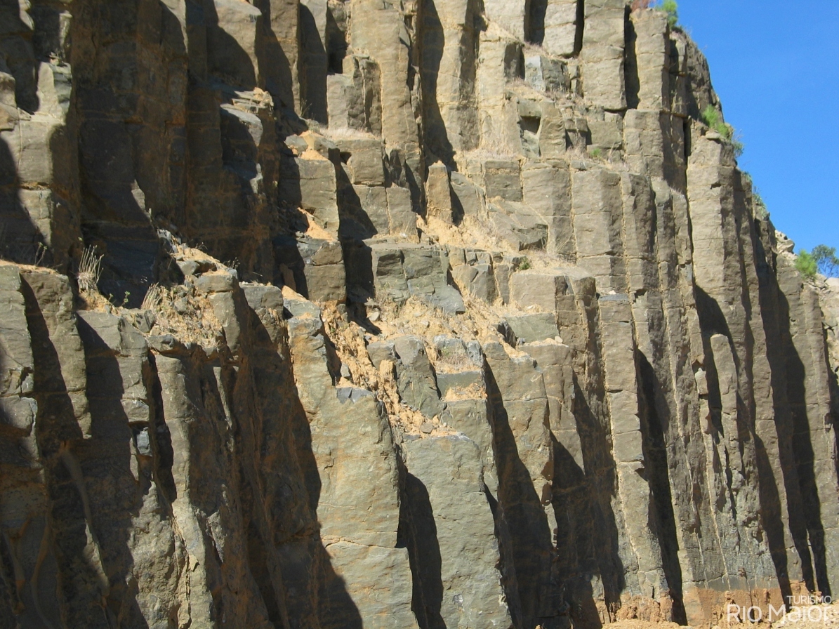 Pelo dorso da Serra dos Candeeiros em direção a Casais Monizes-Alcobertas-Salinas de Rio Maior pode observar-se a chaminé vulcânica / filão camada-basáltico de Portela de Teira (um pouco a sul de Alcobertas) com belas colunas de disjunção prismática  em basalto. A disjunção verifica-se em colunas com cerca de 0,5 m de diâmetro por 15 a 20 m de altura, verticais. A disjunção prismática corresponde a um tipo de alteração existente em rochas vulcânicas, relacionada com contrações que se geram no seio da escoada, aquando do arrefecimento e solidificação da lava, formando assim prismas de forma hexagonal que são sempre perpendiculares à superfície de arrefecimento.