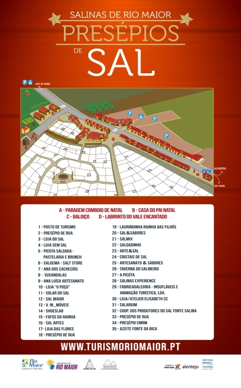 Desde 2012, quem visita as Salinas de Rio Maior pelo Natal, pode apreciar os presépios feitos de sal nas pequenas casinhas de natal, onde os lojistas criam os seus próprios presépios.