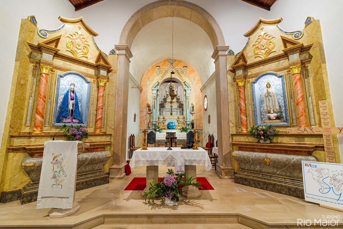 Os dois altares colaterais são de madeira policromada do século XVIII e decorados com elementos que remetem para as construções clássicas.