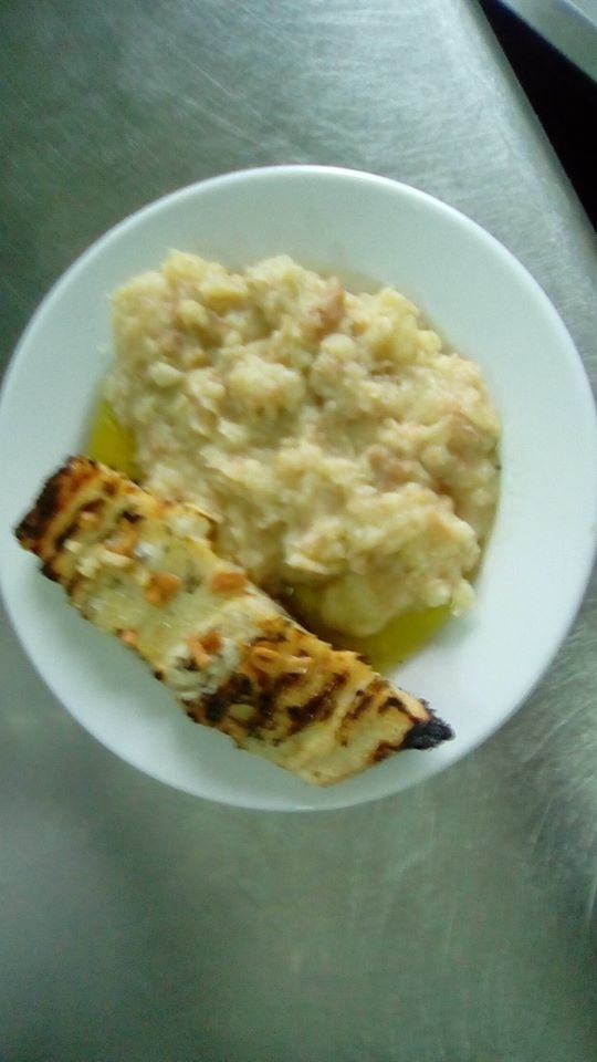 Coze-se a batata partida em bocados. Misturam-se as fatias de pão, o alho cortado e ferve-se tudo em água. Depois de bem fervido escorre-se a água, põe-se muito azeite e ferve-se outra vez. No final deve ficar uma bola meio enxuta.