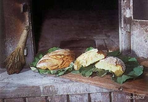 O bolo é posto em cima de uma folha de couve bem lavada e cozido em forno de lenha.