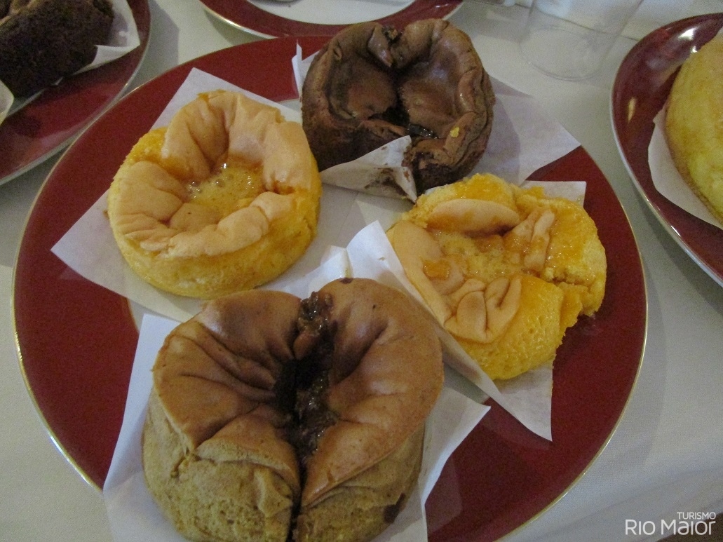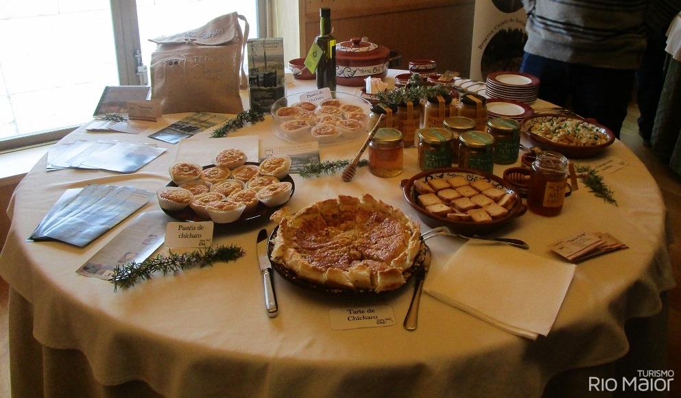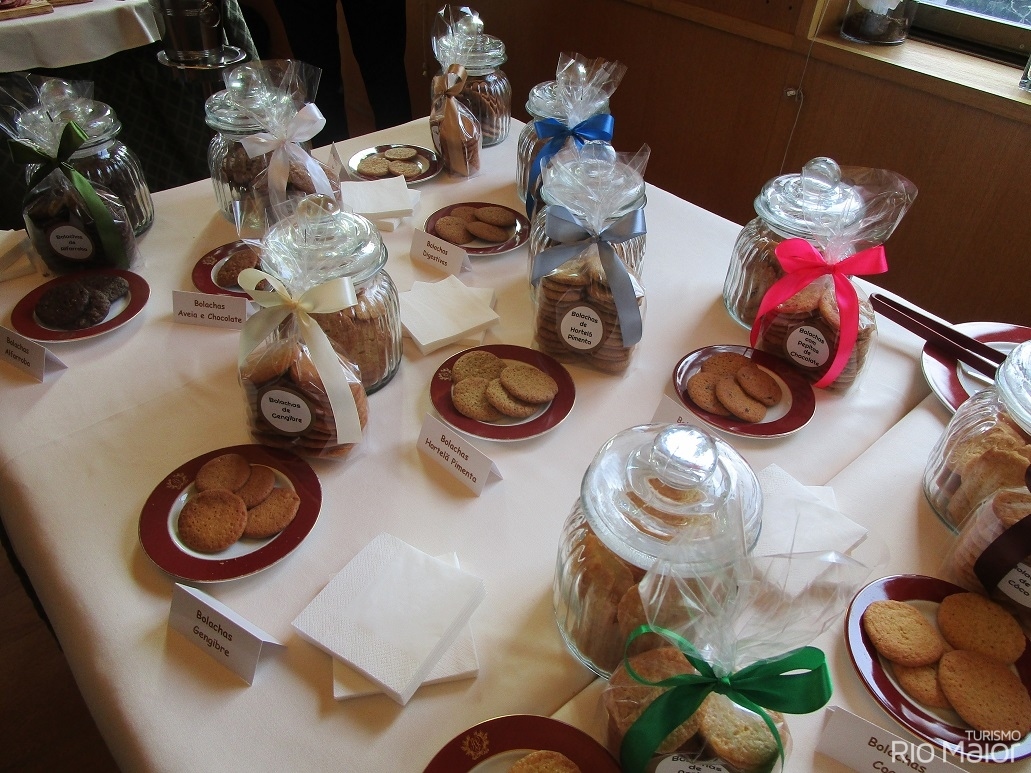 Na parte da doçaria, os presentes deliciaram-se com o Pão de Ló de Rio Maior, lós de ovo, chocolate e café (Quinta Nossa Senhora do Ar), bolachas das Salinas (Alecrim Dourado), o mel (Cooperativa Terra Chã e Loja do Sal) e figo em calda, doce de melão e maçã e uvada (Casa da Caldeira).
