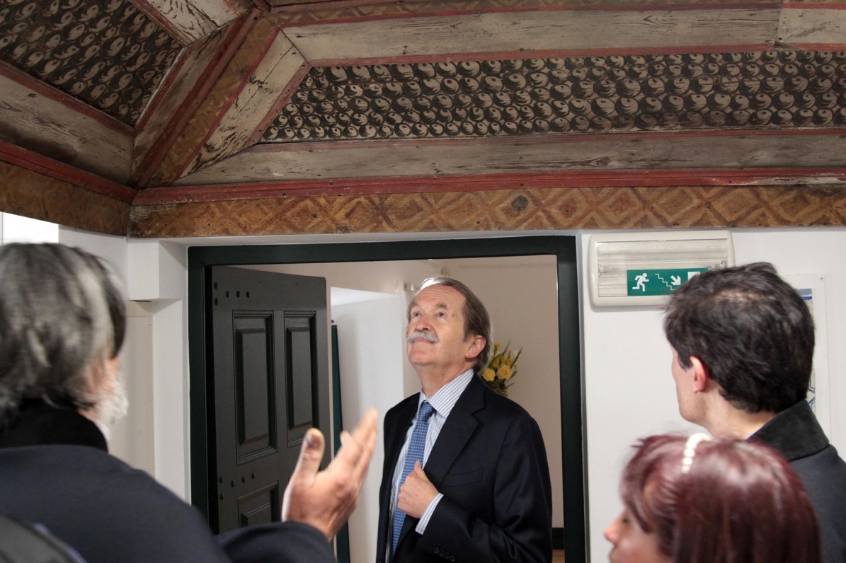 A Loja situa-se na Casa Senhorial de Rio Maior, que foi alvo de obras de recuperação apresentadas neste dia, como a reposição de algumas peças em madeira pintada dos seus tetos, retirados aquando da requalificação do edifício há uns anos, que foram agora repostas dando uma ideia de como eram esses tetos.