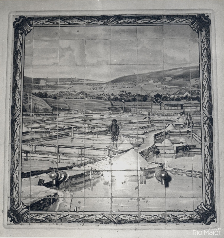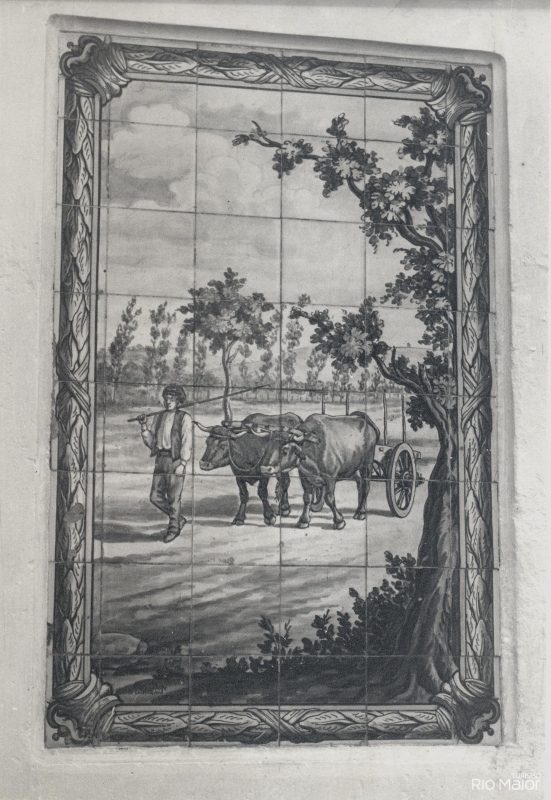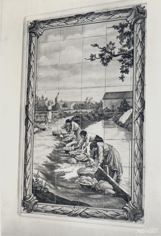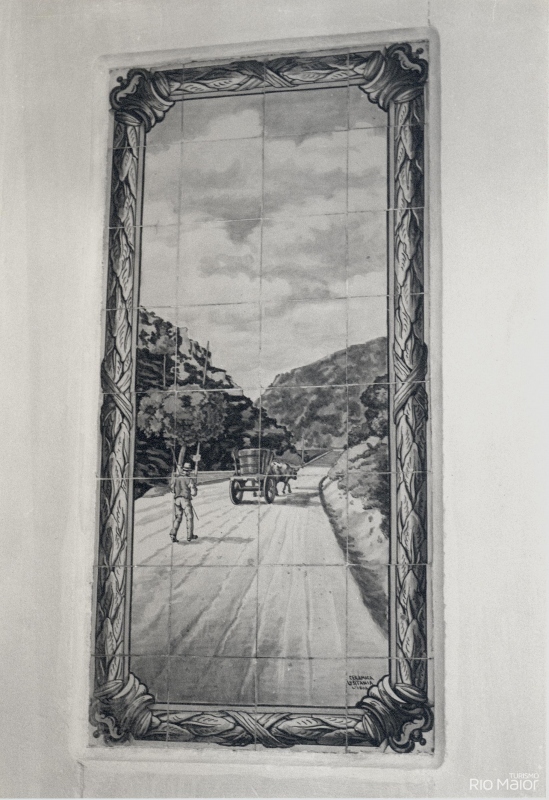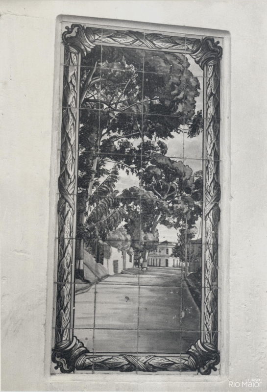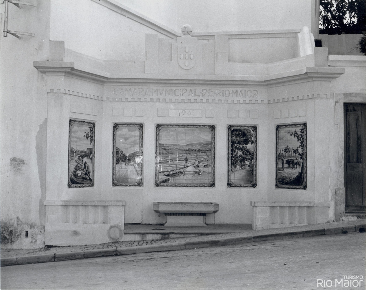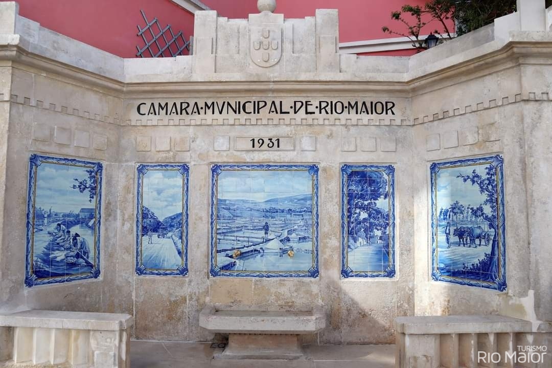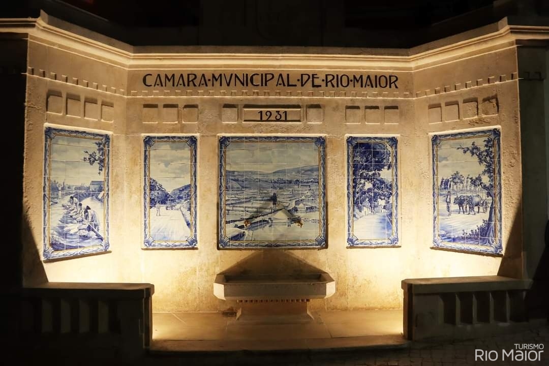 Peça de desenho elegante e dentro dos cânones Art Déco, onde se destacam cinco planos construídos em calcário da região, formando molduras, nas quais se inserem cinco painéis azulejares da fábrica Lusitânia de Lisboa, com cenas bucólicas de Rio Maior: as lavadeiras no Moinho do Canto, as Bocas de Rio Maior, as Salinas de Rio Maior, o Gato Preto e o caminho da Senta. A coroar este conjunto temos as Armas Nacionais, representadas pelo escudo com as cinco quinas encimadas por uma esfera armilar.