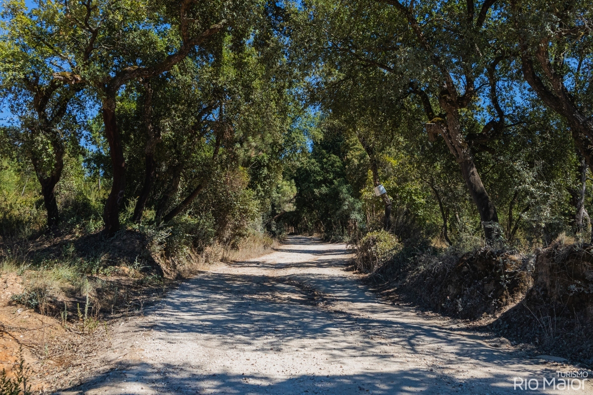 Percurso circular com início e fim na Capela de Azinheira. Tipo de piso misto, 13.3 km predominantemente em terra batida. Começamos junto à pequena capela de nave única, com um recorte barroco e singela datada de 1769. Próximo deste percurso, existiu em tempos a fábrica de pederneiras, utilizadas para armas de fogo e isqueiros. Ao sairmos da localidade, passamos pelos campos onde durante séculos se explorou o sílex, para ser utilizado no fabrico das pederneiras.