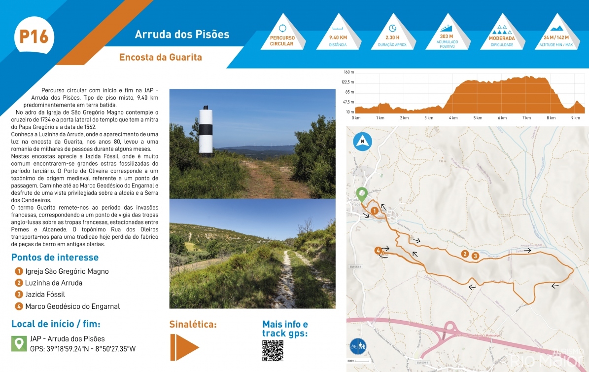 Percurso circular com início e fim na JAP - Arruda dos Pisões. Tipo de piso misto, 9.40 km
