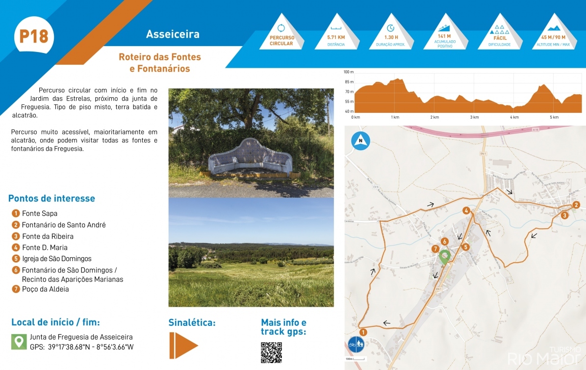 Percurso muito acessível, maioritariamente em alcatrão, onde podem visitar todas as fontes e