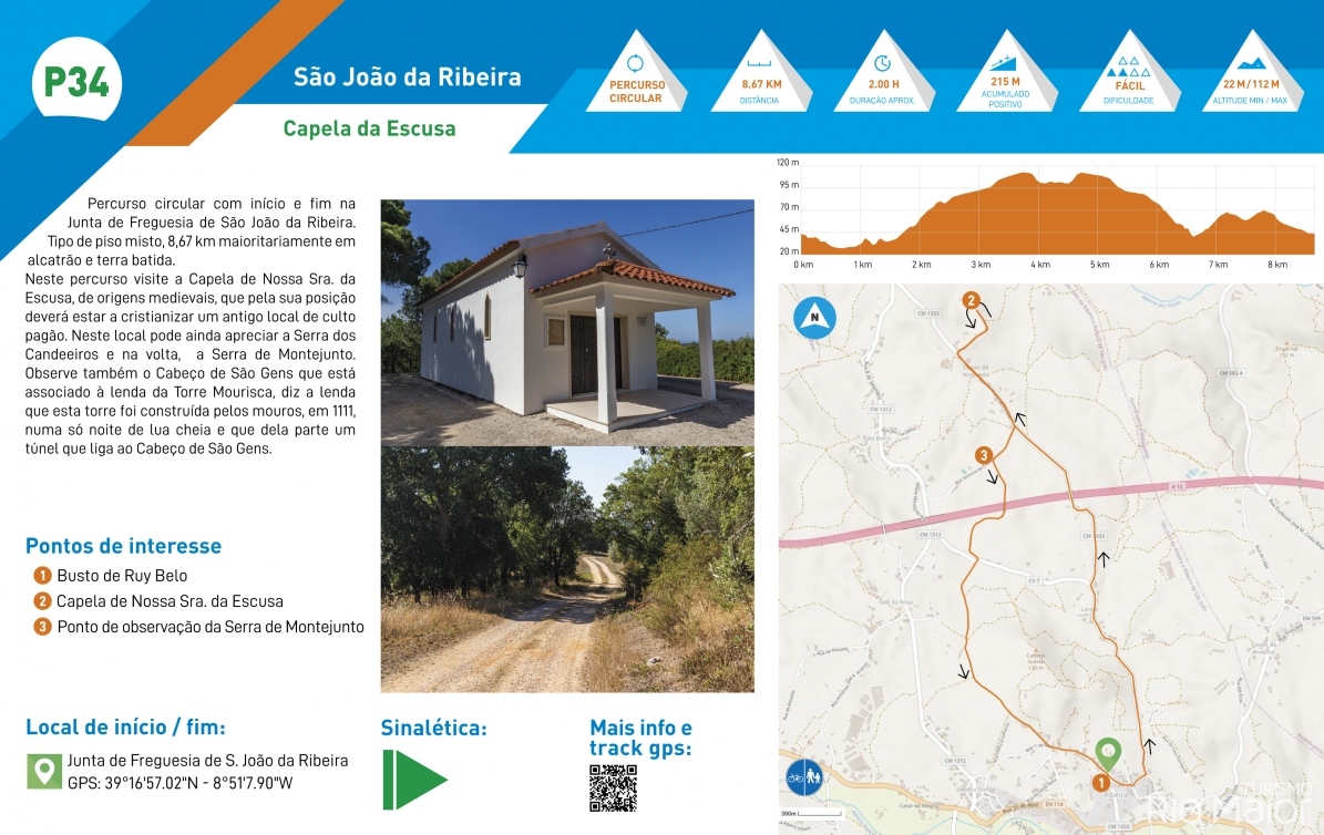 Percurso circular com início e fim na Junta de Freguesia de São João da Ribeira.