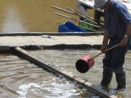 Instrumento utilizado para limpeza dos "talhos" antes do início da "campanha" e para "regar" os mesmos com a água acumulada nas "barrocas".