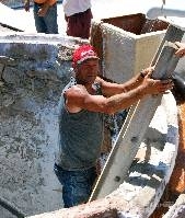 Durante a noite o trabalho era realizado sob a luz de um candeeiro a petróleo, fixado numa estrutura montada na borda do poço.