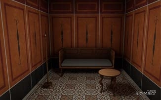 Dos espaços sobreviventes em torno do peristilo tem dois quartos ou cubiculum (singular) nos topos ficavam os leitos e no restante espaço apenas o essencial de mobiliário.