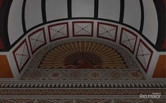 O mosaico da concha é particularmente bem elaborado onde podemos encontrar um grande cuidado nas cores e nas transições entre elas. Esta, a par da concha do peristilo e da ninfa são indicadores de um culto aquático.